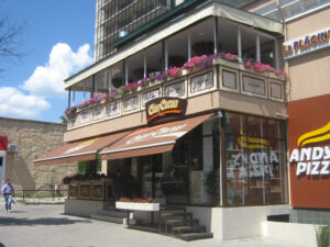 Защитный козырёк над маркизой — предотвращает протекание воды между стеной и маркизой, защищает ткань и механизмы маркизы от загрязнений.