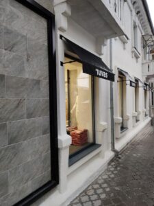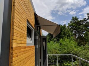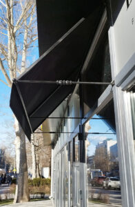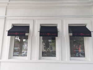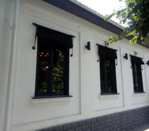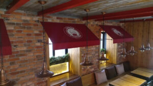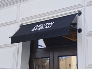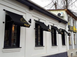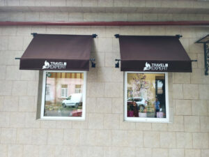 - Брендирование: Для коммерческих объектов на полотно или рюшку можно нанести логотип с помощью шелкографии, что превратит козырёк в эффективный рекламный носитель.
